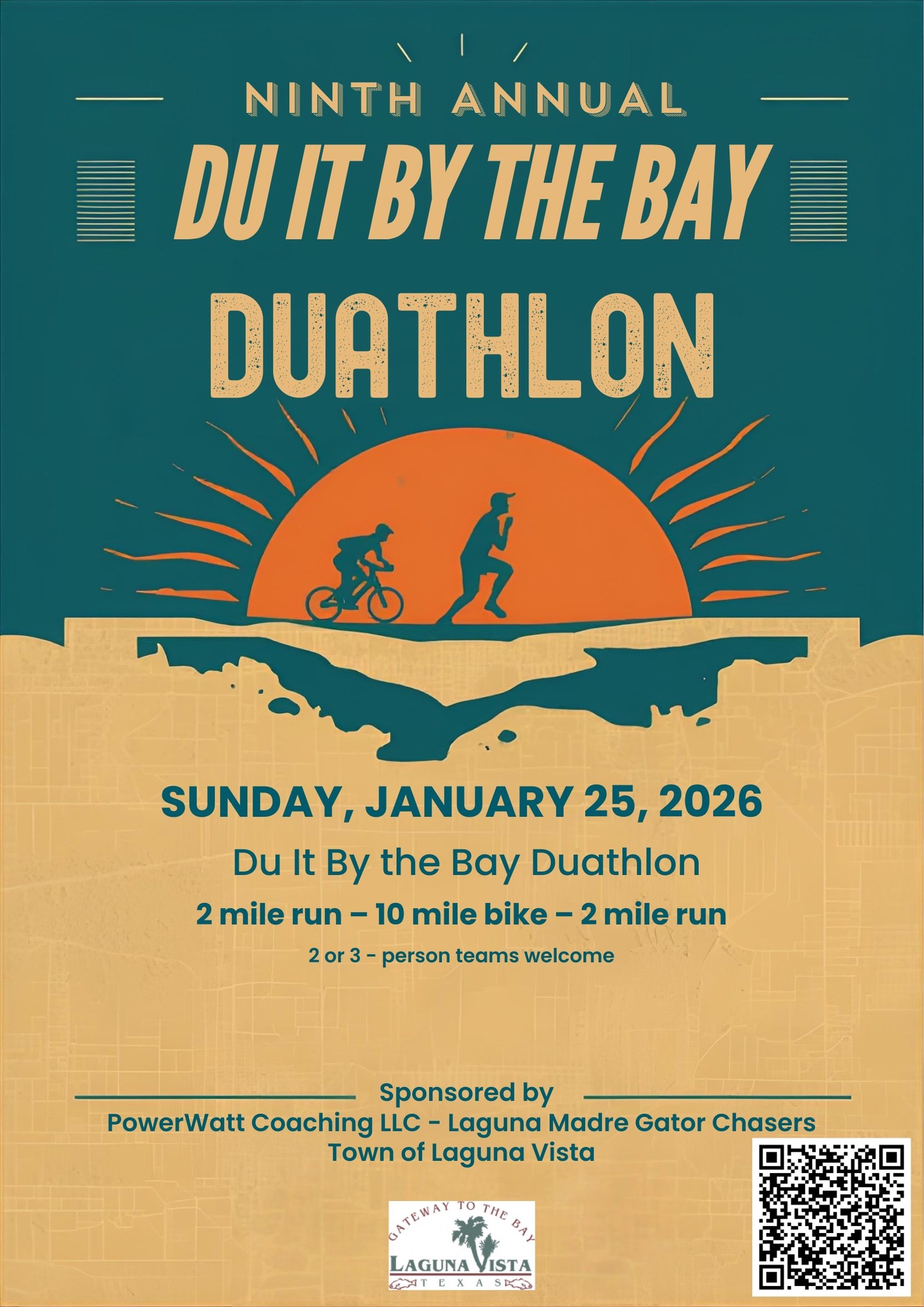 2 Mile Run – 10 Mile Bike – 2 Mile Run 2 or 3-person teams welcome!A fun, fast duathlon along the bay in Laguna Vista, Texas. Perfect for individuals and teams of all levels.